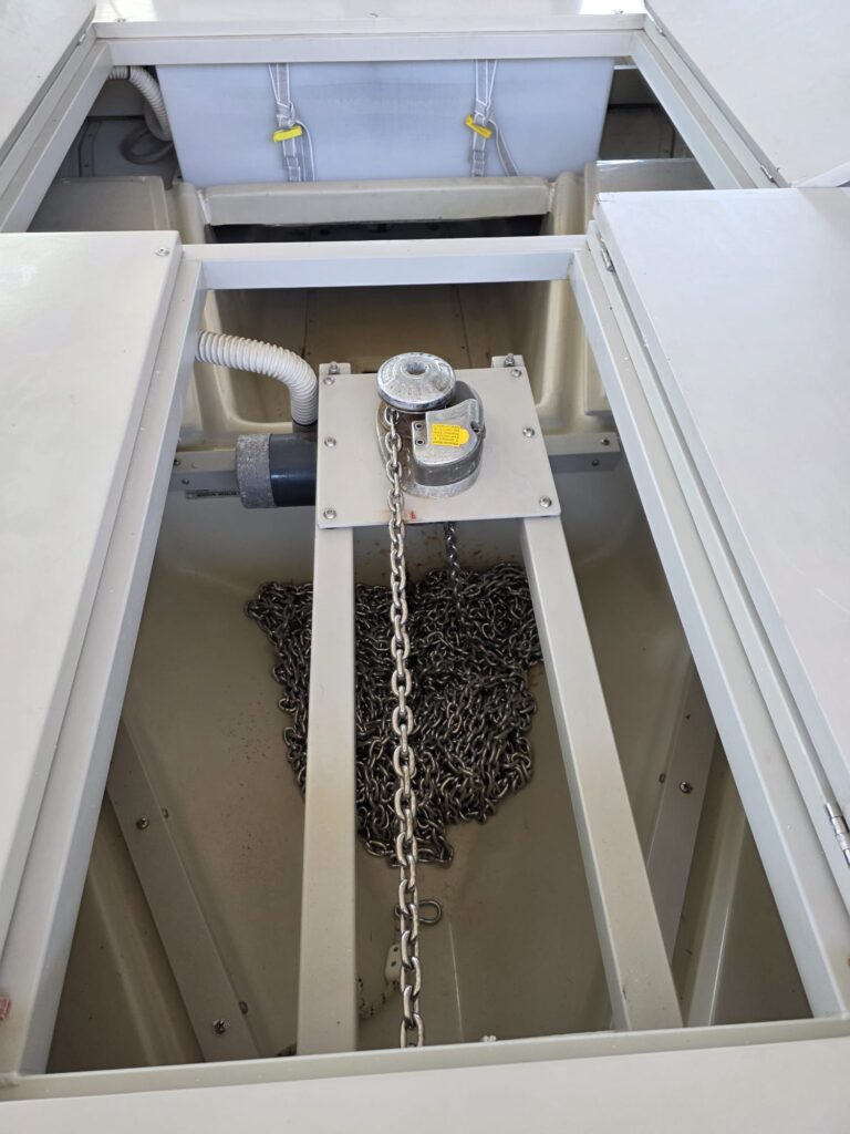 Gel coat nuovo, impianto elettrico nuovo, supporto verricello nuovo e modificato per un recupero dell'ancora senza difficoltà, ponte prendisole nuovo integralmente apribile per un più libero accesso ai vani sottostanti, pozzetto in teak, nuovo divanetto di poppa modificato per avere la configurazione prendisole e pausa pranzo.